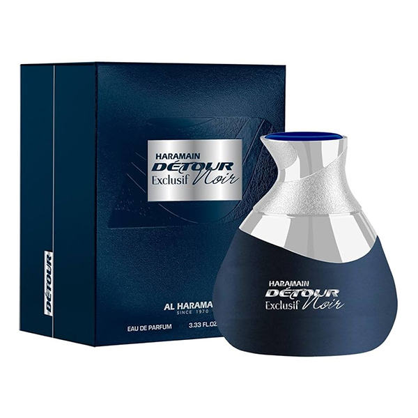 Το Detour Noir Exclusif από το Al Haramain Perfumes είναι ένα ανατολίτικο λουλουδάτο άρωμα για γυναίκες και άνδρες. Οι νότες κορυφής είναι αμύγδαλο, μανταρίνι, νούφαρο και περγαμόντο- οι μεσαίες νότες είναι civet, τριαντάφυλλο, γεράνι, νούφαρο και γαρδένια- οι νότες βάσης είναι Lao oud, βανίλια, guaiac wood, σανταλόξυλο, φύλλα πατσουλί Ινδονησίας, κεχριμπάρι, καφές, ροζ πιπέρι και βρύα βελανιδιάς.