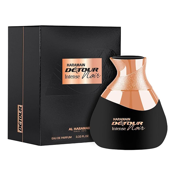 Το Detour Noir Intense από το Al Haramain Perfumes είναι ένα άρωμα για γυναίκες και άνδρες. Οι νότες κορυφής είναι κάρδαμο, ηλιοτρόπιο, περγαμόντο και ροζ πιπέρι- οι μεσαίες νότες είναι λεβάντα, γιασεμί και γεράνι- οι νότες βάσης είναι βανίλια, σανταλόξυλο, αγαρύφαλλο, ξύλο γκουαγιάκ και κεχριμπάρι.