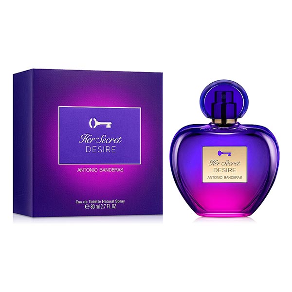 Το Her Secret Desire από τον Antonio Banderas είναι ένα λουλουδάτο-φρουτώδες άρωμα gourmand για γυναίκες. Το Her Secret Desire κυκλοφόρησε το 2019. Οι νότες κορυφής είναι βατόμουρο και περγαμόντο- οι μεσαίες νότες είναι βιολέτα, ίριδα, ινδικό γιασεμί και νερολί- οι νότες βάσης είναι βανίλια, σανταλόξυλο και βάλσαμο ελάτης.
