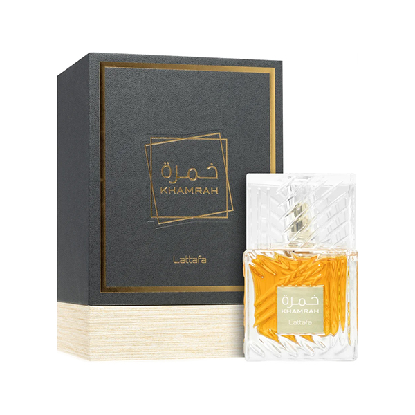 Το Khamrah από το Lattafa Perfumes είναι ένα αρωματικό πικάντικο άρωμα για γυναίκες και άνδρες. Οι νότες κορυφής είναι κανέλα, μοσχοκάρυδο και περγαμόντο- οι μεσαίες νότες είναι χουρμάδες, πραλίνα, τουμπερόζα και μαόνια- οι νότες βάσης είναι βανίλια, φασόλι τόνκα, κεχριμπαρένιο ξύλο, μύρο, βενζίνη και ξύλο ακίγαρου.